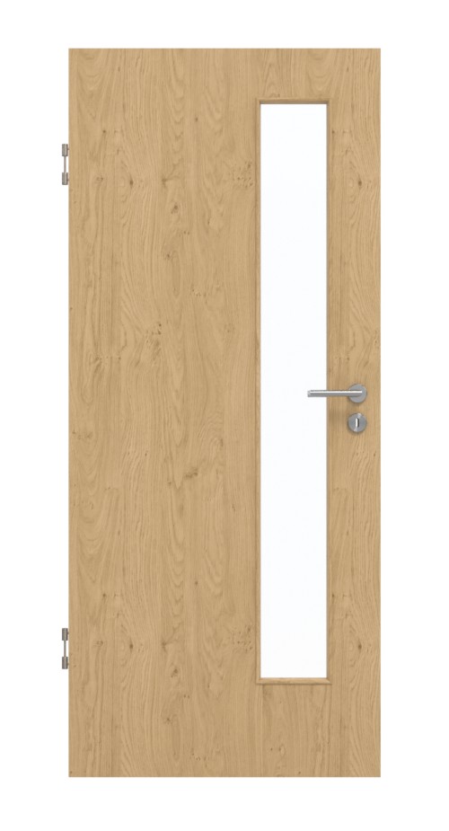 Długi, wąski szklany wycięty fragment zdobi skrzydło drzwi po stronie zamka. Dzięki swoim dynamicznym słojom dekor Authentic Asteiche tworzy niezwykle realistyczny wzór przypominający drewno. Trwała powłoka CPL przekonuje również łatwością pielęgnacji.