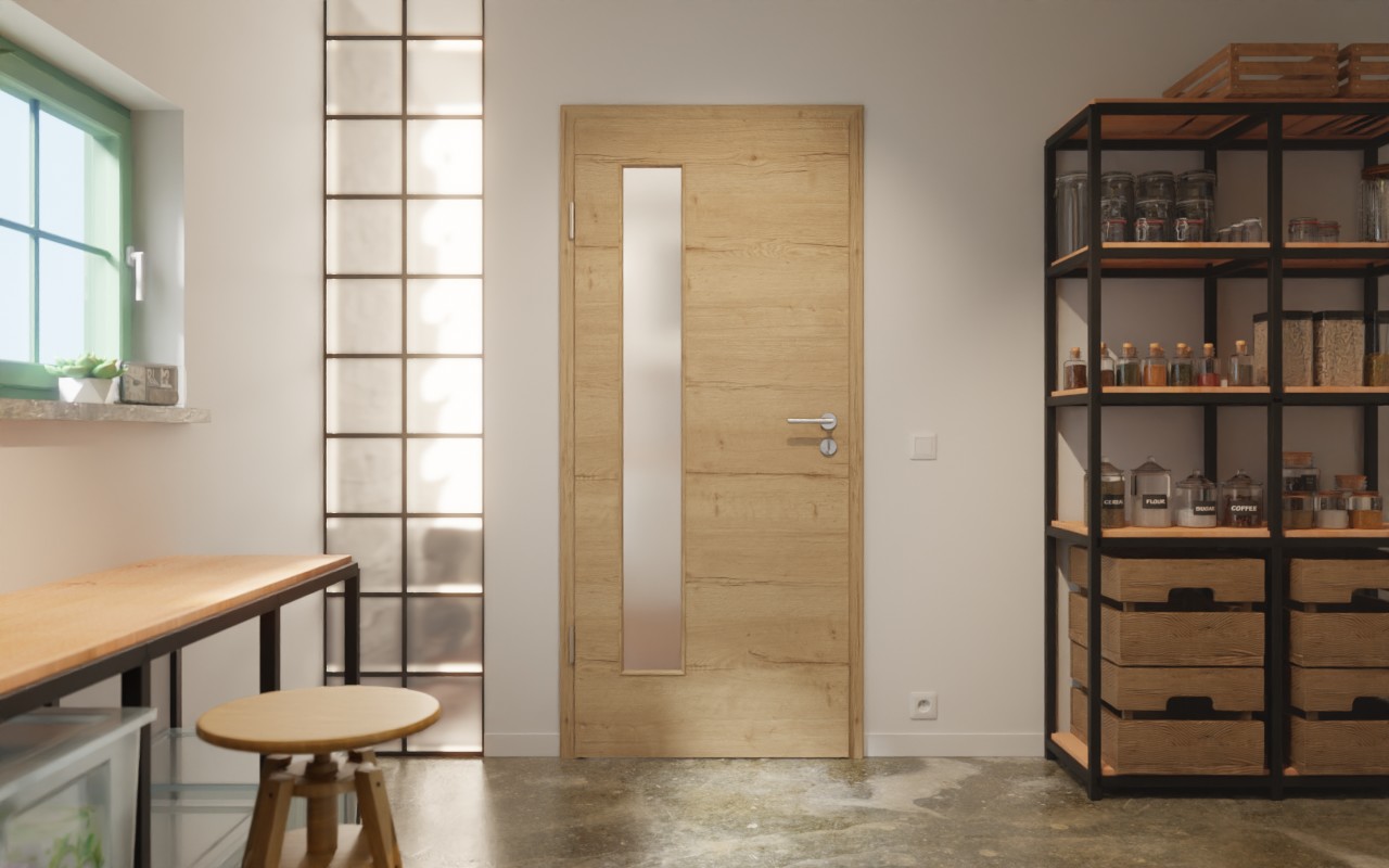 Prostokątny otwór świetlny po stronie zawiasów optycznie ożywia skrzydło drzwiowe. Żywe, poziome usłojenie na dekorze autentycznego dębu rysunkowego tworzy obraz drewna, który wprowadza przytulność do Twojego domu. Powierzchnia CPL jest łatwa do czyszczenia i mniej wrażliwa na zarysowania i uderzenia.