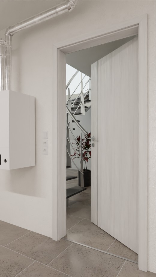 Energooszczędne drzwi ochronne w stylu lisenowym z opuszczanym systemem dźwiękochłonnym i współczynnikiem przenikania ciepła wynoszącym około 1,1 W/m²K: