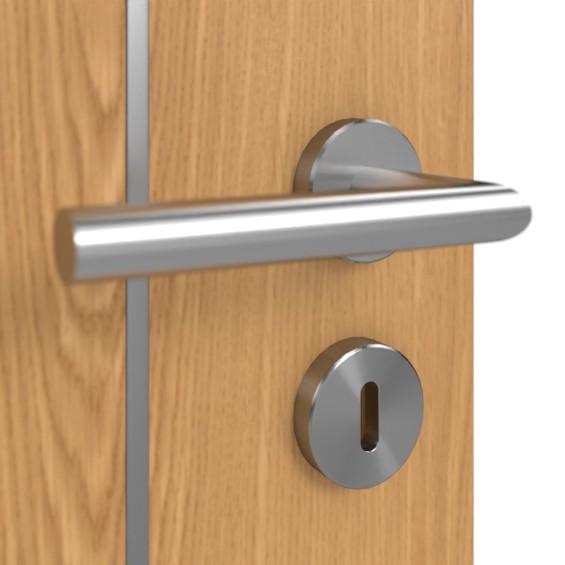 Gładkie skrzydło drzwiowe po stronie klamki zdobi długa, pionowa liza . Dekor drewniany Dąb Premium o klasycznym usłojeniu zapewnia przytulną atmosferę. Oprócz odporności na zarysowania i uderzenia, warstwa wierzchnia CPL wyróżnia się również łatwością pielęgnacji.