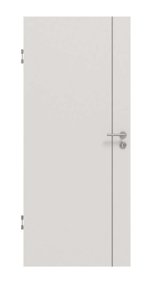 Pionowa liza zdobi drzwi designerskie po stronie klamki. Dzięki jednolitej szarej kolorystyce dekor Silver Grey sprawia przyjemne, harmonijne wrażenie. Oprócz przyjemnego designu powierzchnia CPL przekonuje również swoją odpornością na uderzenia, zarysowania i ścieranie. Jest odporna na plamy i łatwa w czyszczeniu.