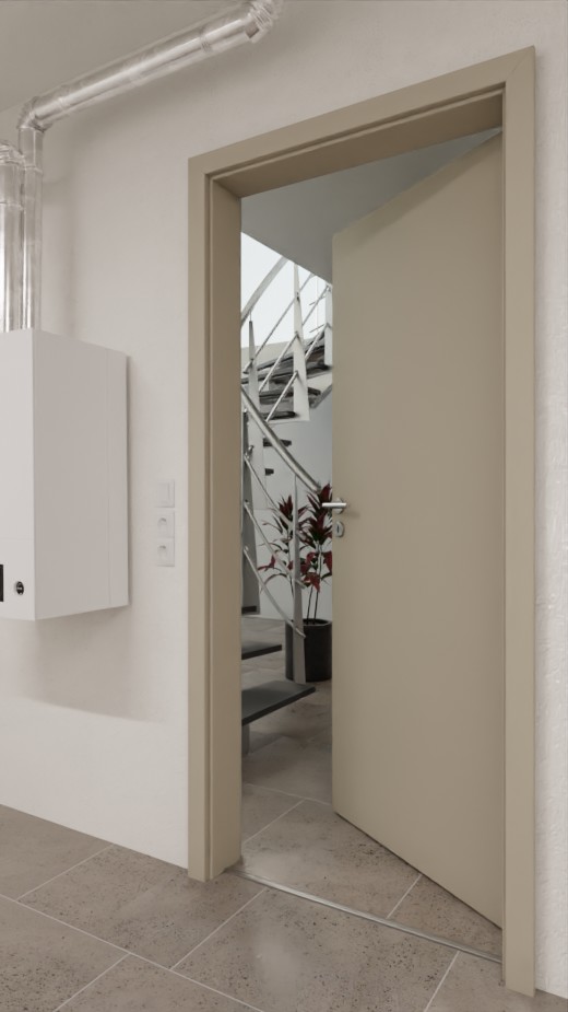 Dzięki specjalnej płycie termoizolacyjnej i aluminiowej osłonie klimatycznej drzwi zapobiegają niepożądanej wymianie ciepła między sąsiednimi pomieszczeniami. W ten sposób ciepło grzewcze pozostaje w pomieszczeniu zimą, a latem na zewnątrz. Drzwi energooszczędne klasy energetycznej 3 są wyposażone w zintegrowaną uszczelkę podłogową Schall-Ex , dzięki czemu skutecznie chronią przed hałasem i przeciągami.
