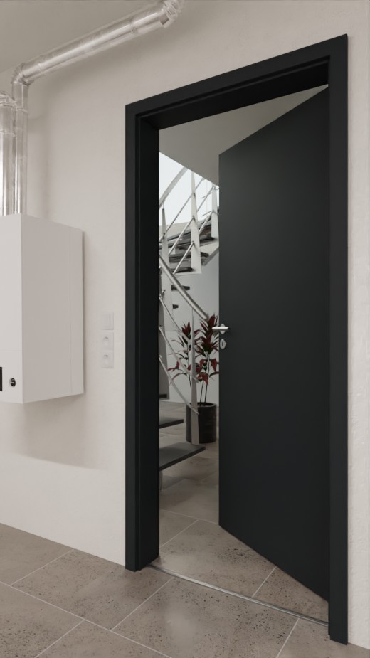 Energooszczędne drzwi ochronne z specjalną płytą izolacyjną i współczynnikiem przenikania ciepła wynoszącym około 1,1 W/m²K: