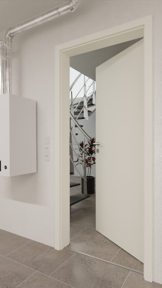 Energooszczędne drzwi ochronne z specjalną płytą izolacyjną, aluminiowym pokryciem klimatycznym i współczynnikiem przenikania ciepła wynoszącym około 1,1 W/m²K: