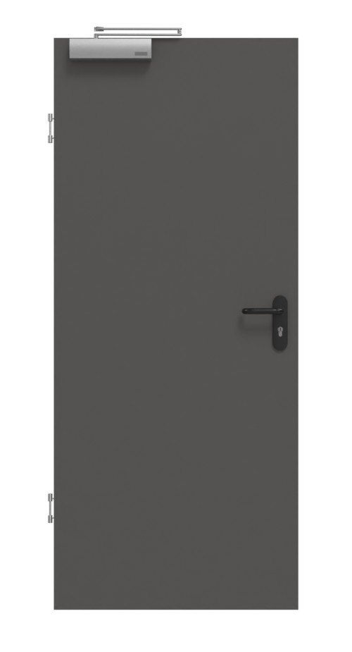 Oprócz skrzydła drzwiowego standardowy zakres dostawy obejmuje plastikową klamkę, zamek PZ, dwa trzyczęściowe zawiasy, nożycowy zamykacz górny oraz opuszczaną uszczelkę podłogową.