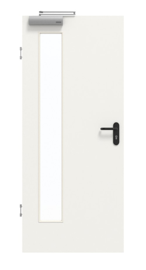 Rama z litego drewna ze stabilizatorem oraz płyta wiórowa w połączeniu z warstwą wierzchnią z płyty HDF o grubości 3 mm tworzą stabilną i niezawodną konstrukcję. Aby spełnić wymagania normy DIN 18095 dotyczącej drzwi przeciwdymowych , zestaw przeciwdymowy uzupełnia samozamykacz górny oraz opuszczana uszczelka podłogowa.