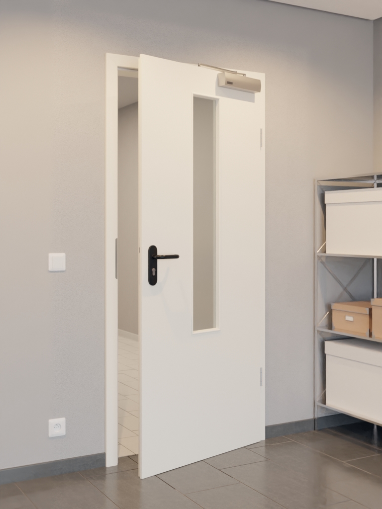 Starannie skonstruowana drzwi przeciwpożarowe z zamkiem górnym i uszczelką dolną: