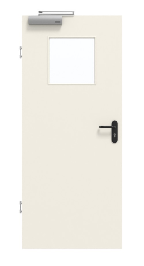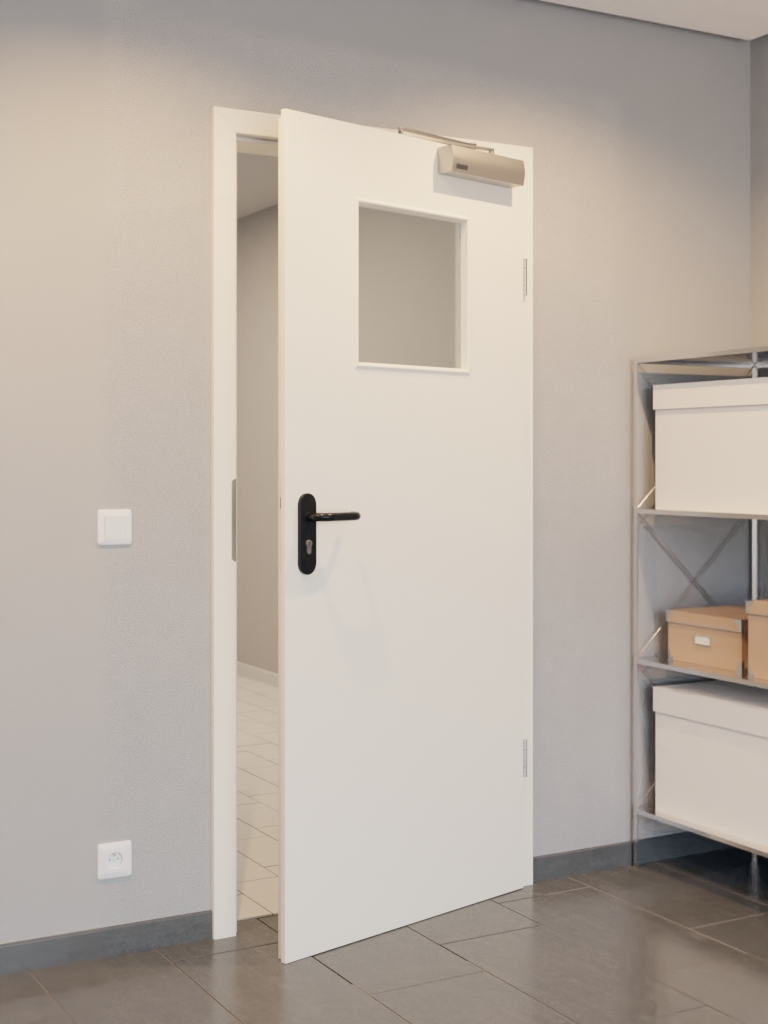 Wysokiej jakości konstrukcja, drzwi funkcyjne dymoszczelne w białym kolorze z płytą pełno wiórową i ramą z litego drewna: