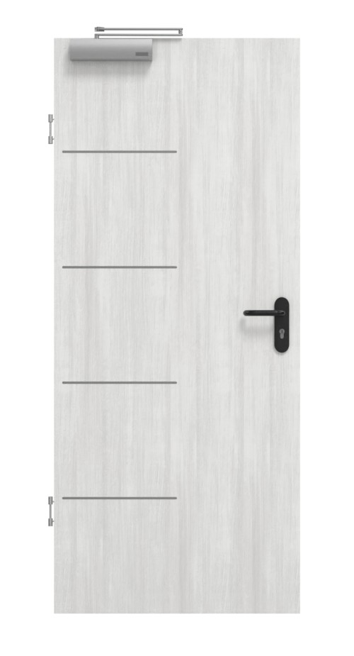Od krawędzi skrzydła aż do środka drzwi dekoracyjnych biegną cztery eleganckie listwy. Od góry do dołu dekor Authentic Grigio pokrywa szary odcień z drobnymi cieniami. Ponadto powierzchnia CPL, przyjazna w codziennym użytkowaniu, jest łatwa do czyszczenia oraz odporna na uderzenia i zarysowania.