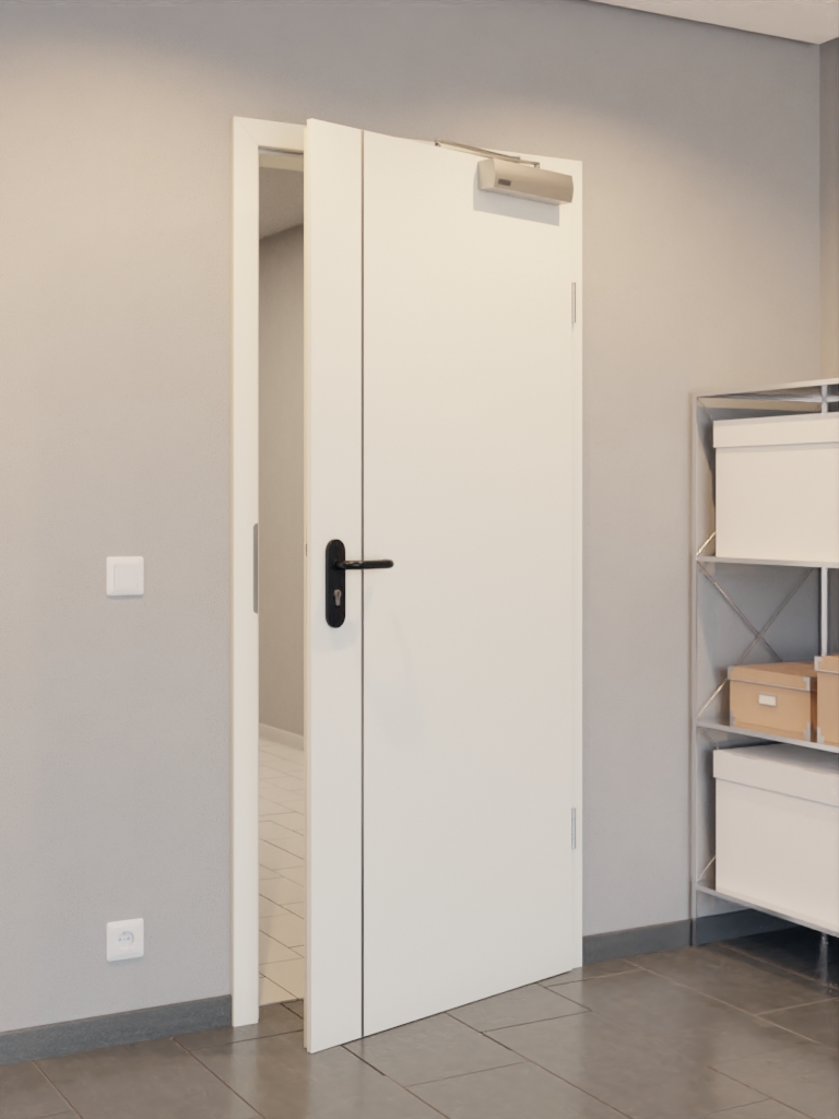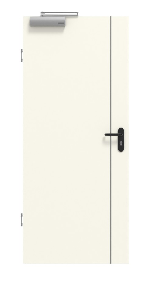 Wyposażona w warstwę wierzchnią HDF na płycie wiórowej pełnej w ramie z litego drewna wraz ze stabilizatorem, konstrukcja ta okazuje się być zaawansowana technicznie. Aby zapewnić pełną ochronę dymoszczelną, drzwi są wyposażone w samozamykacz drzwiowy górny i opuszczaną uszczelkę podłogową zgodnie z normą DIN 18095.