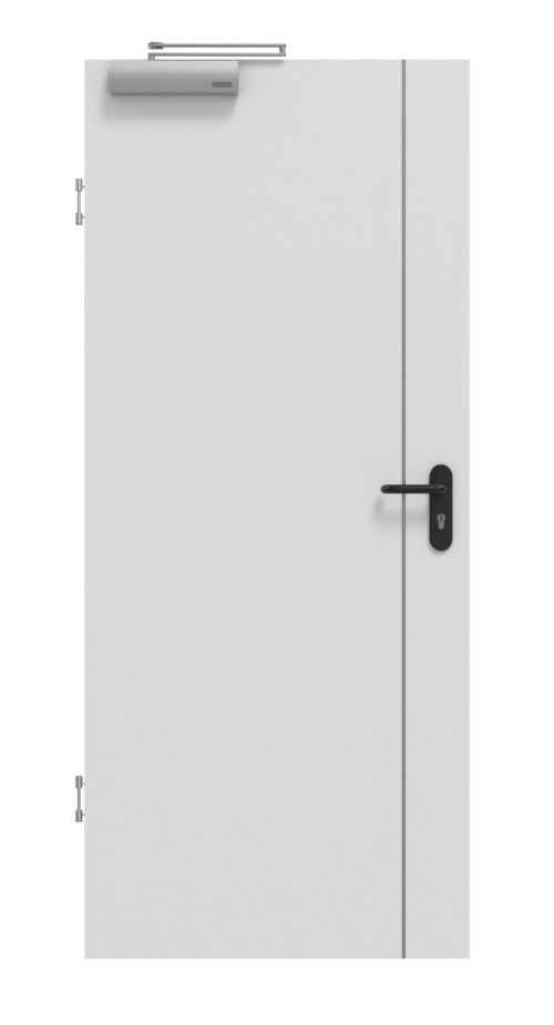 Wyposażona w warstwę wierzchnią HDF na płycie wiórowej pełnej w ramie z litego drewna wraz ze stabilizatorem, konstrukcja ta okazuje się być zaawansowana technicznie. Aby zapewnić pełną ochronę dymoszczelną, drzwi są wyposażone w samozamykacz drzwiowy górny i opuszczaną uszczelkę podłogową zgodnie z normą DIN 18095.