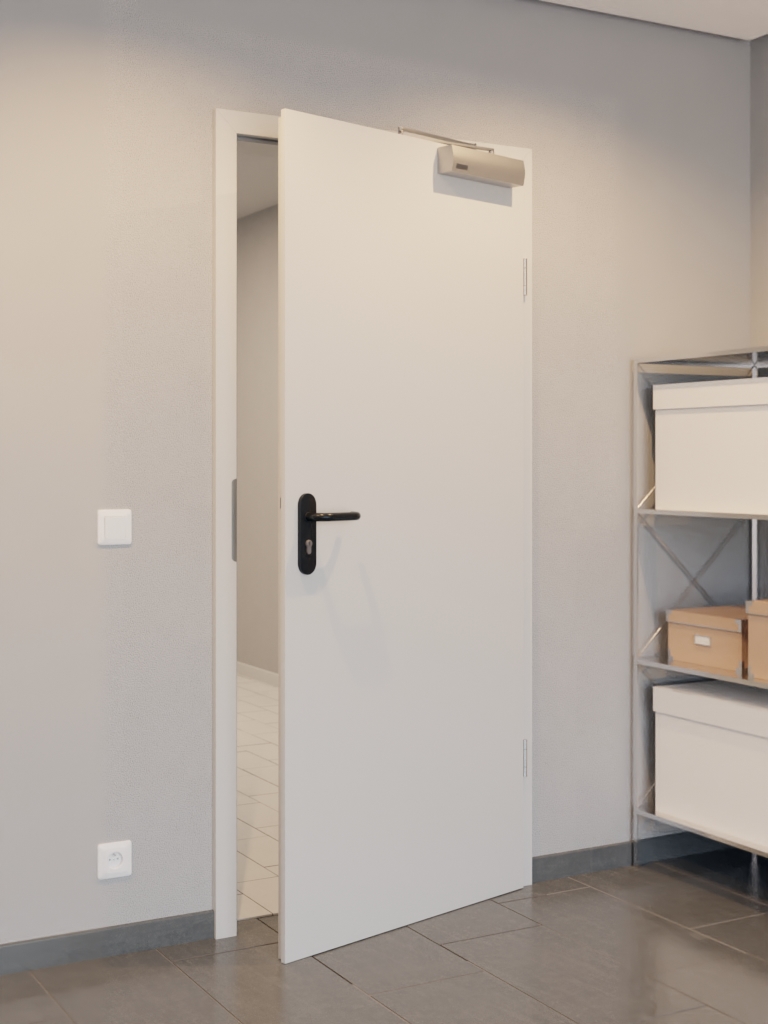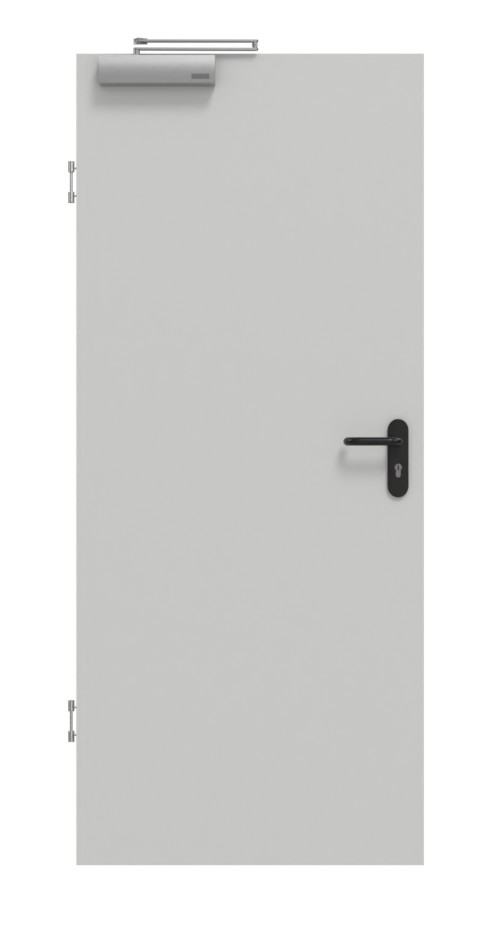 Normatywne drzwi marki Garant z pełną płytą i 3-częściowymi zawiasami zapewniającymi niezawodną ochronę przed gazami dymnymi: