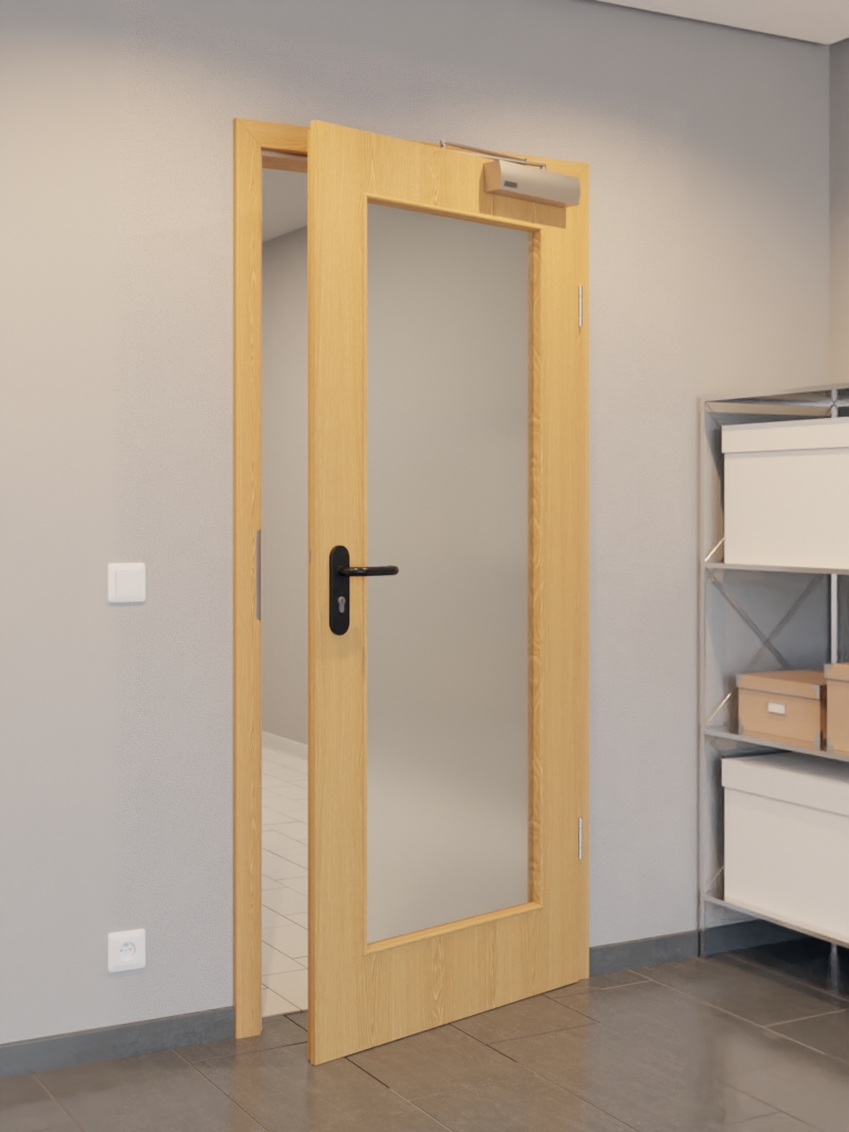 W niezawodna marka drzwi funkcjonalnych z mechanizmem zamykającym i uszczelką podłogową przeciw dymowi: