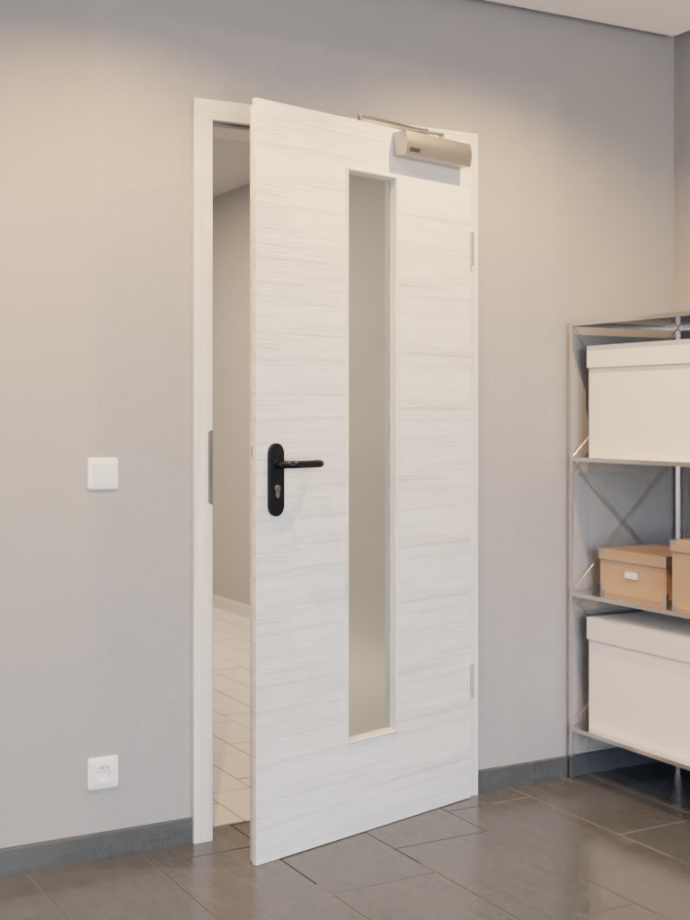 - z płytą wiórową pełną, izolacją akustyczną Schallex i samozamykaczem drzwiowym górnym
