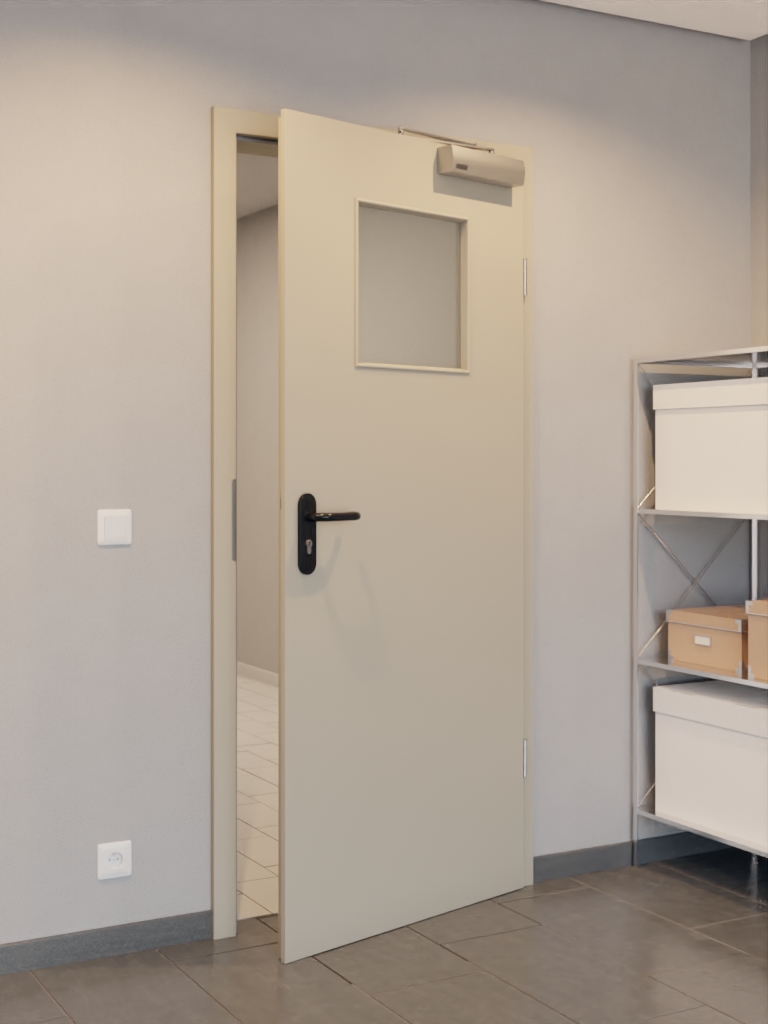 O stabilność dba konstrukcja składająca się z płyty wiórowej oraz ramy z litego drewna ze stabilizatorem. Jako warstwa wierzchnia stosowana jest płyta pilśniowa o grubości 3 mm i wysokiej gęstości. Aby zapewnić pełną ochronę przed dymem, drzwi zgodnie z normą DIN 18095 są wyposażone w opuszczaną uszczelkę podłogową oraz zamknięcie górne .