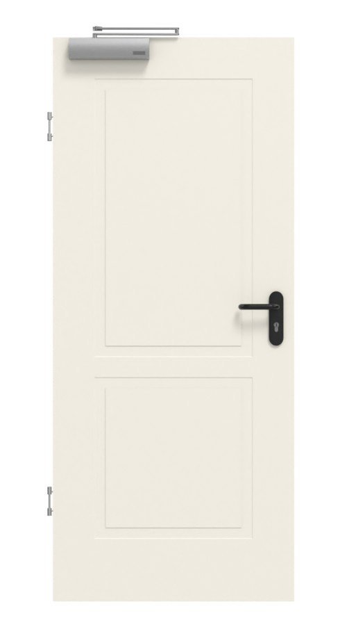 Starannie skonstruowane drzwi przeciwpożarowe z pełną płytą wiórową i ramą z litego drewna:
