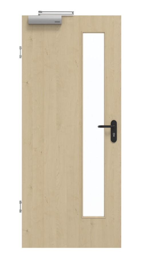 Długi, wąski szklany wycięty fragment zdobi skrzydło drzwi po stronie zamka. Równowaga słojów oraz jasnobeżowy odcień drewna nadają dekorowi Natura Ahorn spokojny charakter. Łatwa w czyszczeniu powierzchnia CPL można w razie potrzeby szybko wytrzeć i jest ona odporna na uderzenia oraz niektóre zadrapania.