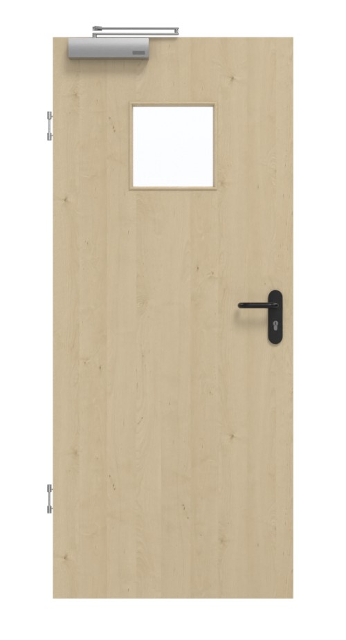 Konstrukcja składa się z ramy z litego drewna ze stabilizatorem, płyty wiórowej pełnej oraz płyty HDF o grubości 3 mm i wysokiej gęstości jako warstwy wierzchniej. W połączeniu z samozamykaczem drzwiowym górnym i opuszczaną uszczelką podłogową drzwi spełniają wymagania normy DIN 18095 dotyczącej drzwi dymoszczelnych.