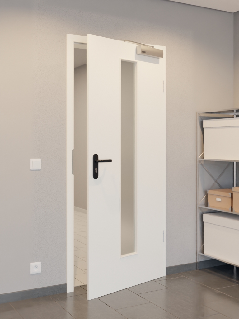 Drzwi wykonane są z ramy z litego drewna ze stabilizatorem oraz solidnej płyty wiórowej. Na konstrukcji znajduje się warstwa wierzchnia z płyty HDF o grubości 3 mm. Zamknięcie drzwiowe oraz opuszczana uszczelka podłogowa sprawiają, że drzwi spełniają wymagania normy DIN 18095 dotyczącej drzwi przeciwdymowych.