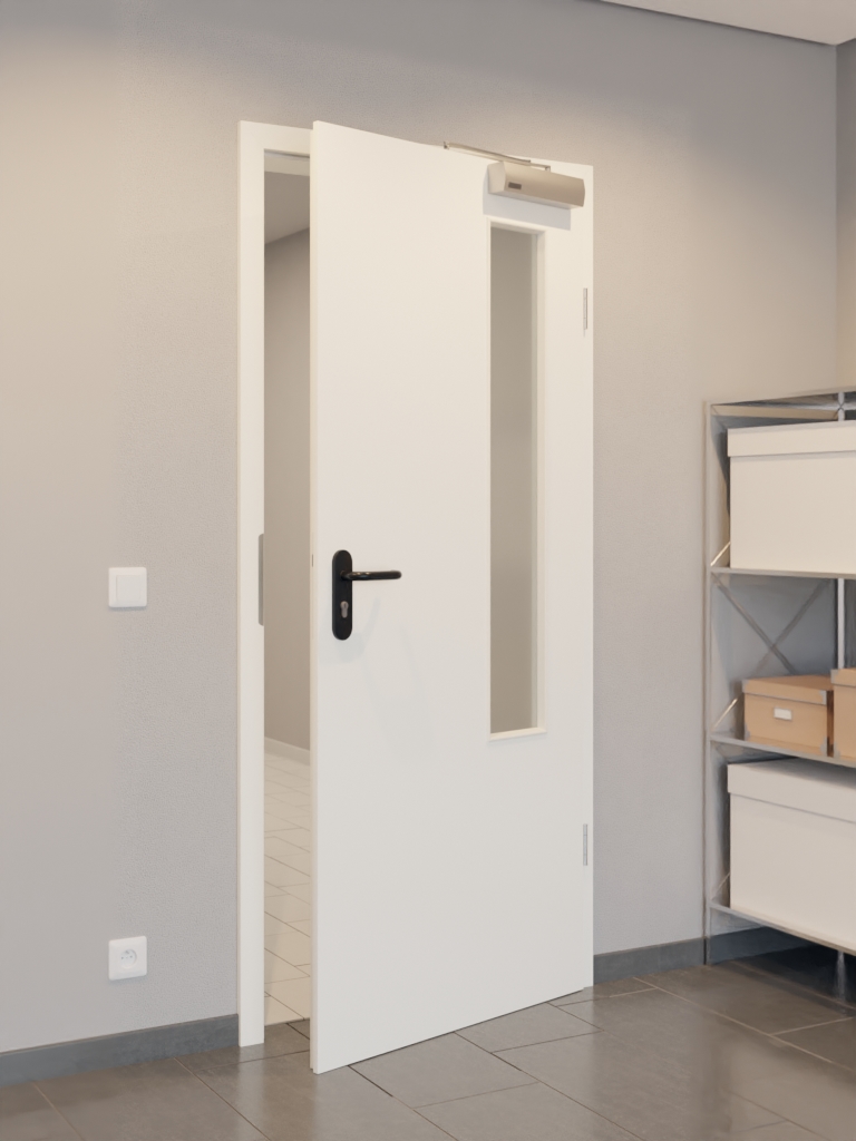 Normatywne drzwi wewnętrzne od Garant z pełną płytą i 3-częściowymi zawiasami dla niezawodnej ochrony przed toksycznymi gazami dymnymi: