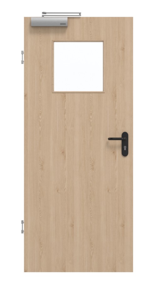 Model jest zbudowany z solidnej ramy z drewna litego ze stabilizatorem i solidnej płyty wiórowej pełnej. Warstwa wierzchnia składa się z płyty HDF o grubości 3 mm. Zgodnie z normą DIN 18095 drzwi zamykają się samoczynnie dzięki samozamykaczowi drzwiowemu górnemu i są uszczelnione od strony podłogi za pomocą standardowej izolacji akustycznej Schallex.
