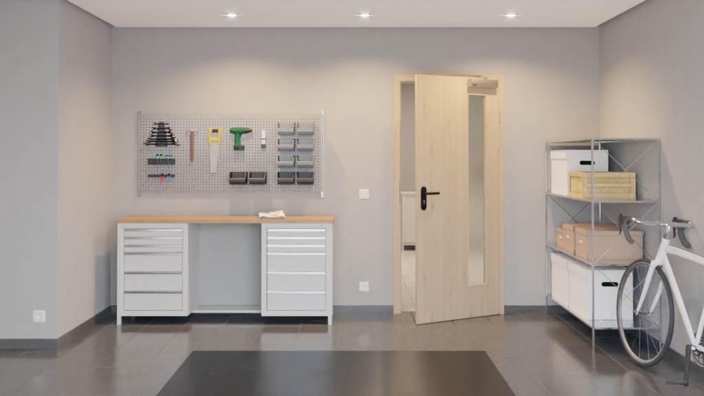 Normatywne drzwi wewnętrzne od Garant z ramą z litego drewna, płytą pełno wiórową i zamkiem górnym dla skutecznej ochrony przed dymem: