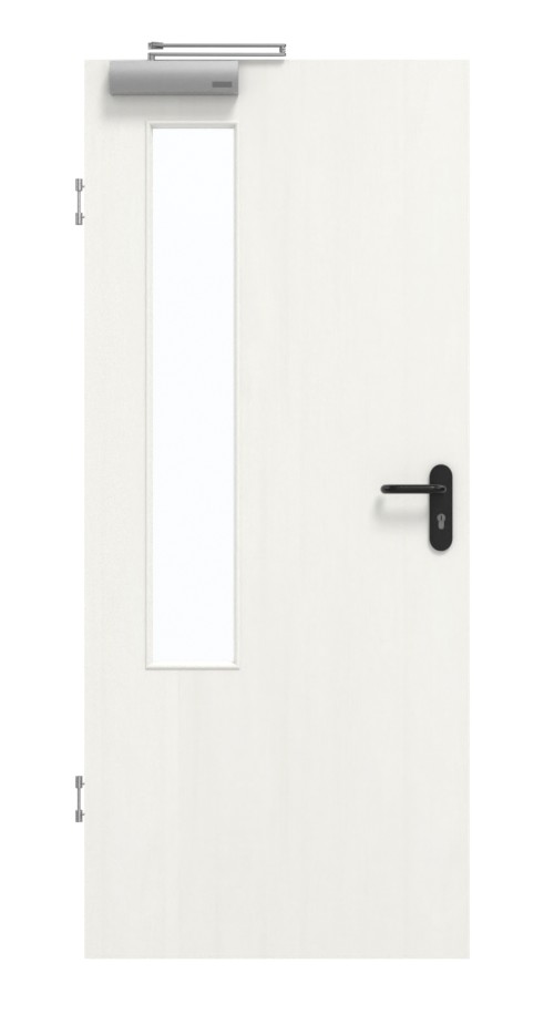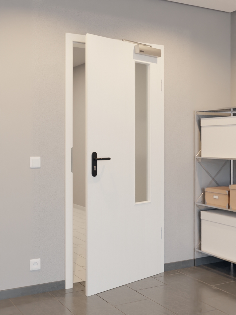Wyposażona w warstwę wierzchnią HDF na płycie wiórowej pełnej w ramie z litego drewna wraz ze stabilizatorem, konstrukcja ta okazuje się być zaawansowana technicznie. W połączeniu z samozamykaczem drzwiowym górnym i opuszczaną uszczelką podłogową drzwi spełniają wymagania normy DIN 18095 dotyczącej drzwi dymoszczelnych.