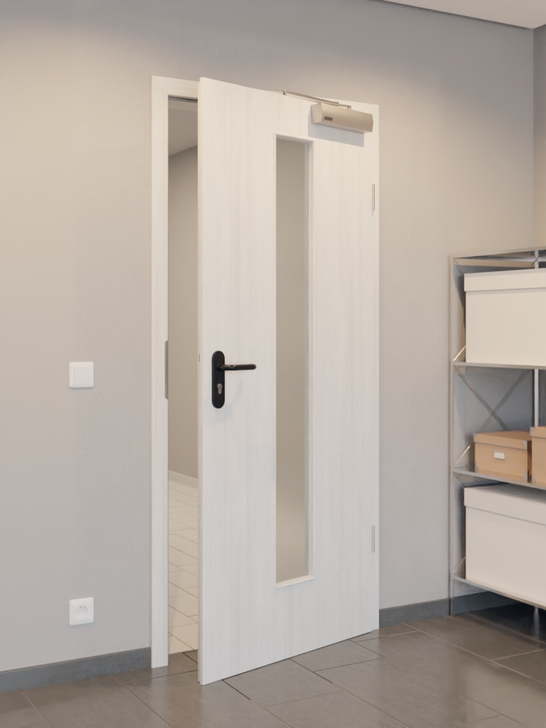 Konstrukcja składa się z ramy z litego drewna z stabilizatorem, płyty wiórowej oraz 3 mm grubej, wysokodensyfikowanej płyty HDF jako pokrycia. Zgodnie z normą DIN 18095 model uzupełniają górny mechanizm zamykający oraz obniżana uszczelka podłogowa.