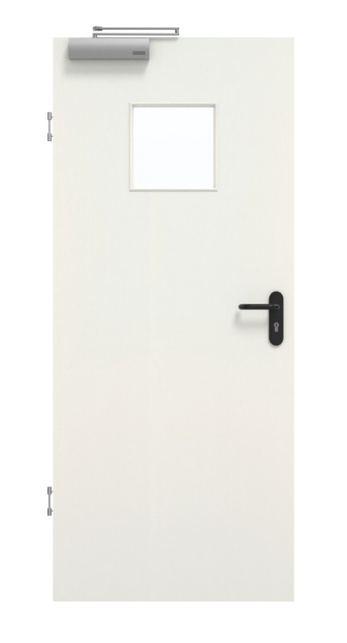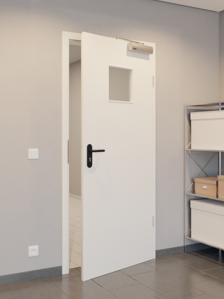 Wyposażona w warstwę wierzchnią HDF na płycie wiórowej pełnej w ramie z litego drewna wraz ze stabilizatorem, konstrukcja ta okazuje się być zaawansowana technicznie. Aby zapewnić pełną ochronę dymoszczelną, drzwi są wyposażone w samozamykacz drzwiowy górny i opuszczaną uszczelkę podłogową zgodnie z normą DIN 18095.