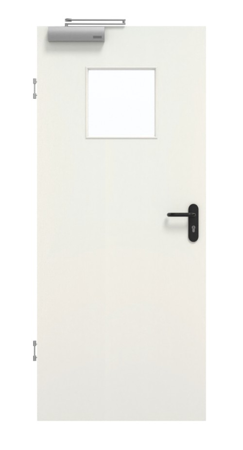 Stabilność pomieszczenia wewnętrznego zapewnia konstrukcja z ramy z drewna litego ze stabilizatorem i płytą wiórową pełną. Jako warstwa wierzchnia stosowana jest płyta pilśniowa o grubości 3 mm i wysokiej gęstości. W połączeniu z samozamykaczem drzwiowym górnym i opuszczaną uszczelką podłogową drzwi spełniają wymagania normy DIN 18095 dla drzwi dymoszczelnych.