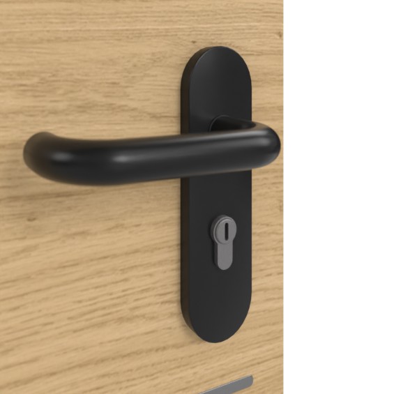 • Zakres dostawy: Skrzydło drzwiowe, zawiasy, zamek cylindryczny, samozamykacz, obniżana uszczelka podłogowa, czarny plastikowy uchwyt