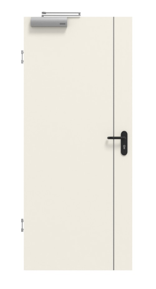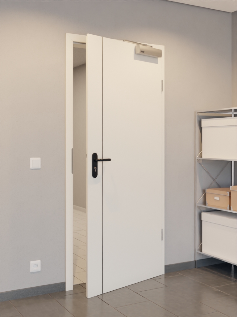 Stabilna konstrukcja składa się z pełnej wkładki z płyty wiórowej, ramy z litego drewna ze stabilizatorem oraz płyty wierzchniej o grubości 3 mm wykonanej z płyty HDF. Zgodnie z normą DIN 18095 drzwi zamykają się samoczynnie dzięki samozamykaczowi drzwiowemu górnemu i są uszczelnione od strony podłogi za pomocą standardowej izolacji akustycznej Schallex.