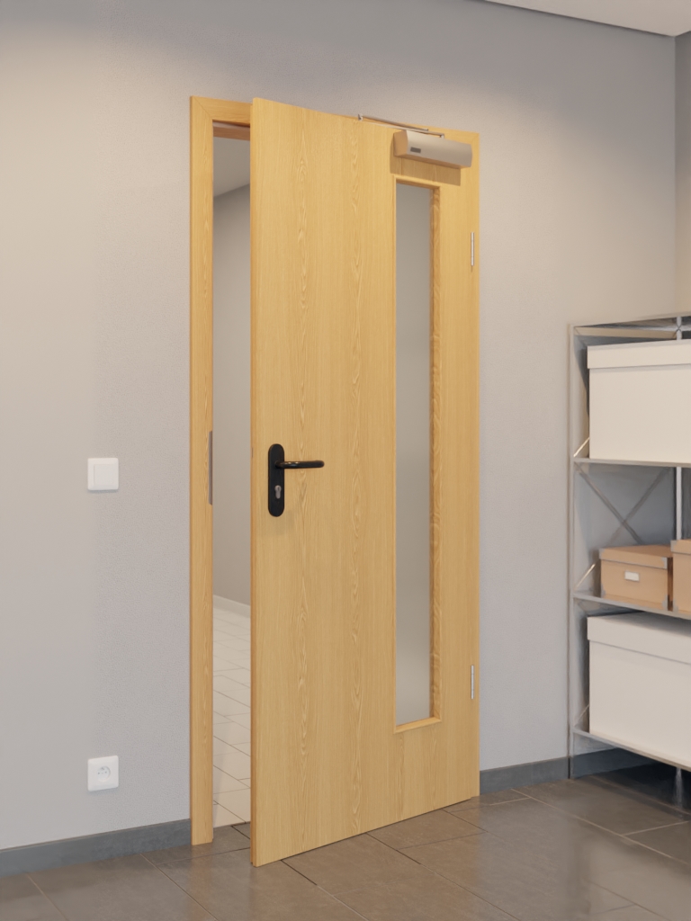 Solidna, dymoszczelna i piękna: Drzwi dymoszczelne LA-4 z zawiasami dębowymi Premium od znanego producenta Garant zapobiegają przedostawaniu się toksycznych gazów dymowych w przypadku pożaru.