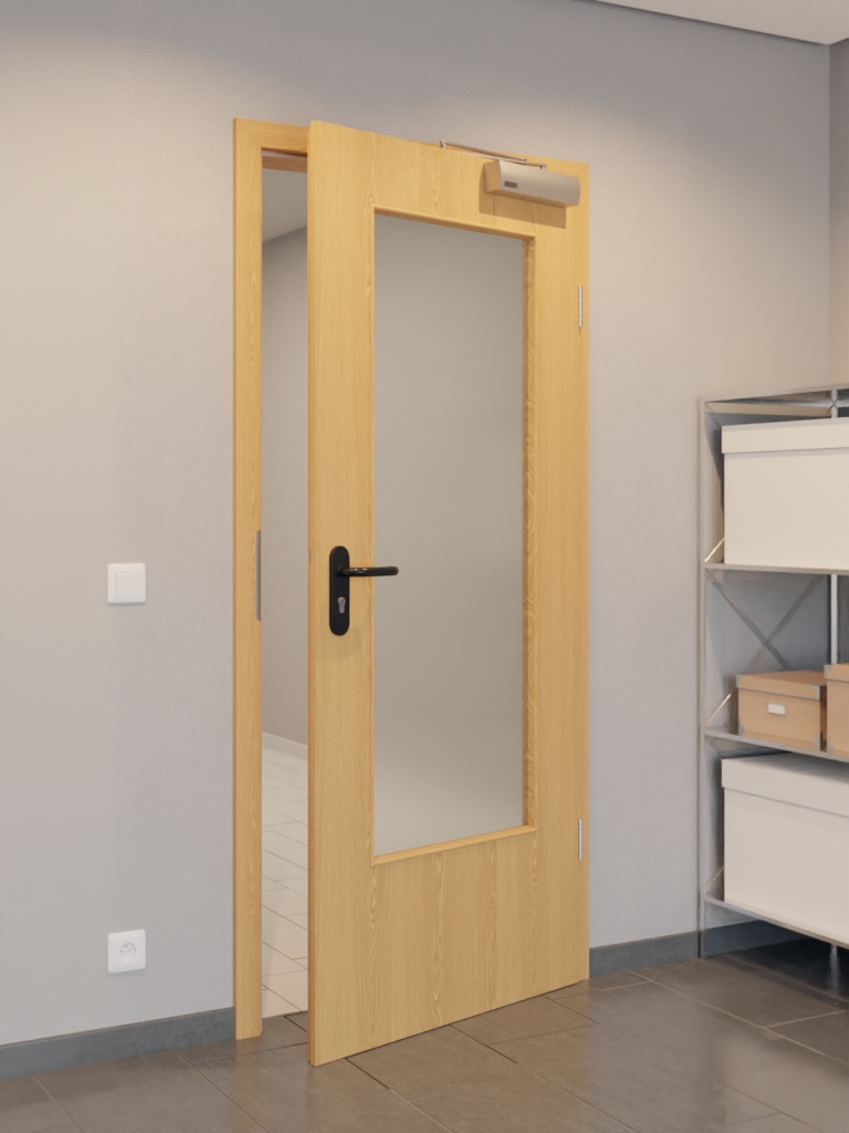 Model jest skonstruowany z ramy z litego drewna ze stabilizatorem oraz solidnej płyty wiórowej. Pokrycie składa się z płyty HDF o grubości 3 mm. Zgodnie z normą DIN 18095 dla drzwi przeciwpożarowych, konstrukcję uzupełniają zamykacz górny oraz opadająca uszczelka podłogowa.
