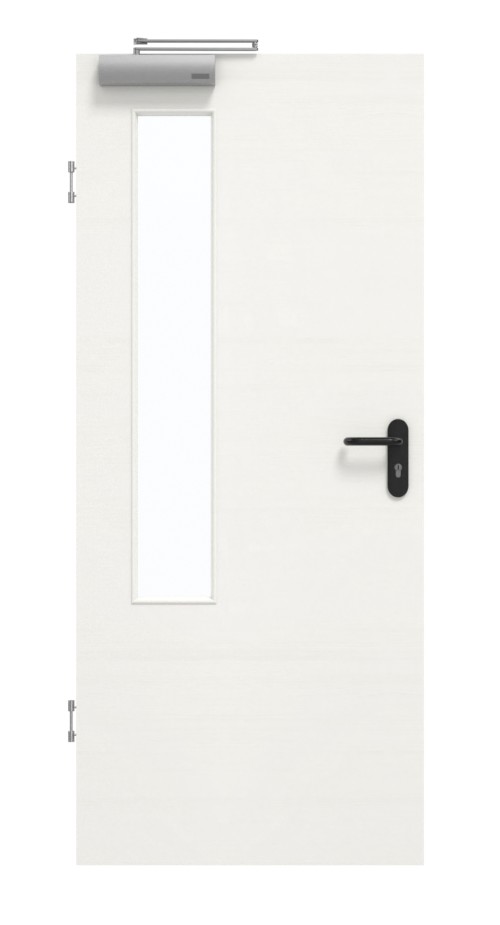 Stabilność pomieszczenia wewnętrznego zapewnia konstrukcja z ramy z drewna litego ze stabilizatorem i płytą wiórową pełną. Jako warstwa wierzchnia stosowana jest płyta pilśniowa o grubości 3 mm i wysokiej gęstości. Wraz z samozamykaczem drzwiowym górnym i uszczelką dolną drzwi spełniają wymagania normy DIN 18095 dotyczącej drzwi dymoszczelnych.
