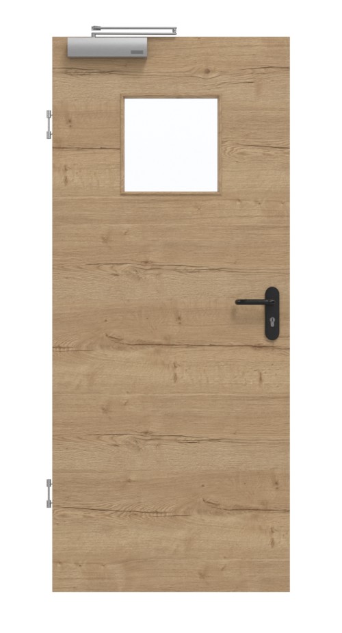 Wewnątrz drzwi znajduje się w ramie z litego drewna ze stabilizatorem solidna płyta pełna. Pokrycie składa się z płyty HDF o grubości 3 mm. Zgodnie z normą DIN 18095 dla drzwi przeciwpożarowych, konstrukcję uzupełniają górny zamykacz drzwi oraz opadająca uszczelka podłogowa.