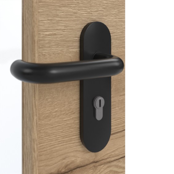Oprócz skrzydła drzwiowego standardowy zakres dostawy obejmuje plastikowy uchwyt, zamek PZ, dwa trzyczęściowe zawiasy, górny mechanizm zamykający oraz opadającą uszczelkę podłogową.