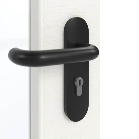 Standardowy zakres dostawy obejmuje skrzydło drzwiowe, klamkę z tworzywa sztucznego, zamek PZ, dwa trzyczęściowe zawiasy, samozamykacz nożycowy do drzwi górnych oraz uszczelkę dolną.