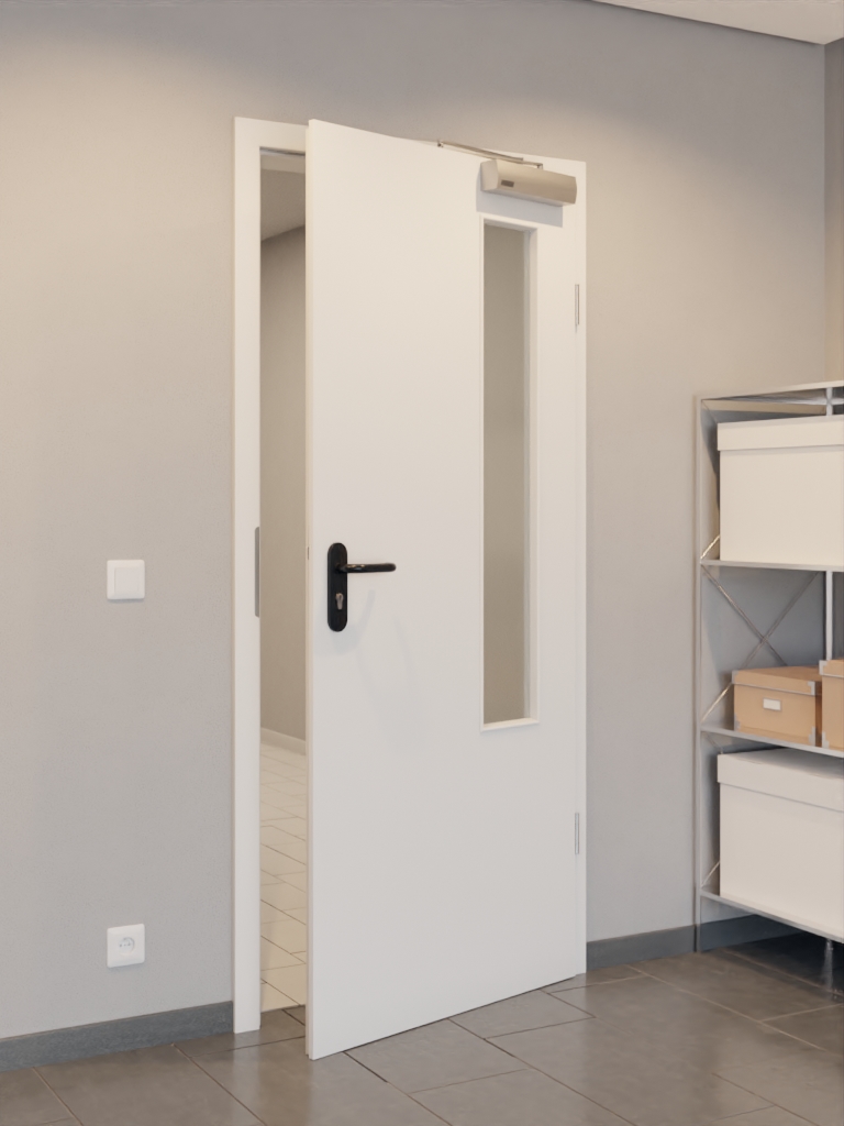 Stylowa funkcjonalna drzwi G-TEC z mechanizmem zamykającym i uszczelką podłogową przeciw dymowi: