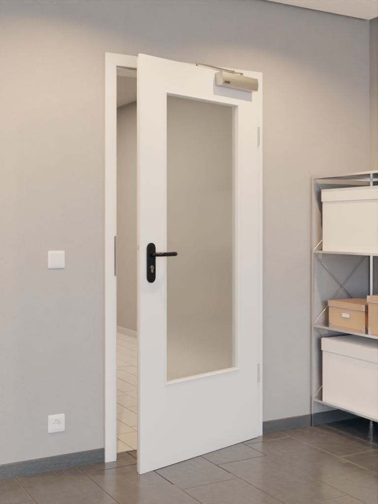 Matowa drzwi funkcjonalne od Garant z mechanizmem zamykającym i uszczelką podłogową przeciw dymowi: