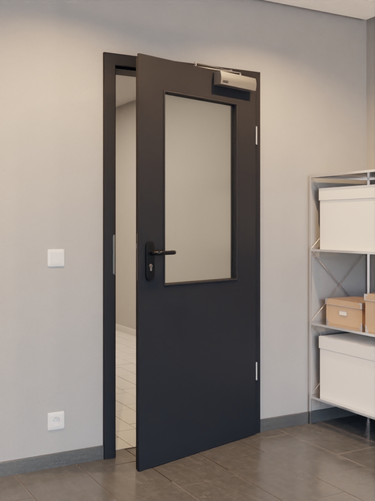 Matowa drzwi funkcjonalne od Garant z ochroną przed gazami dymnymi: