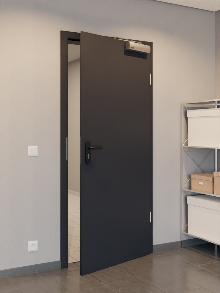 Wyważone drzwi funkcjonalne z uszczelką podłogową i zamkiem górnym przeciwko toksycznemu dymowi: