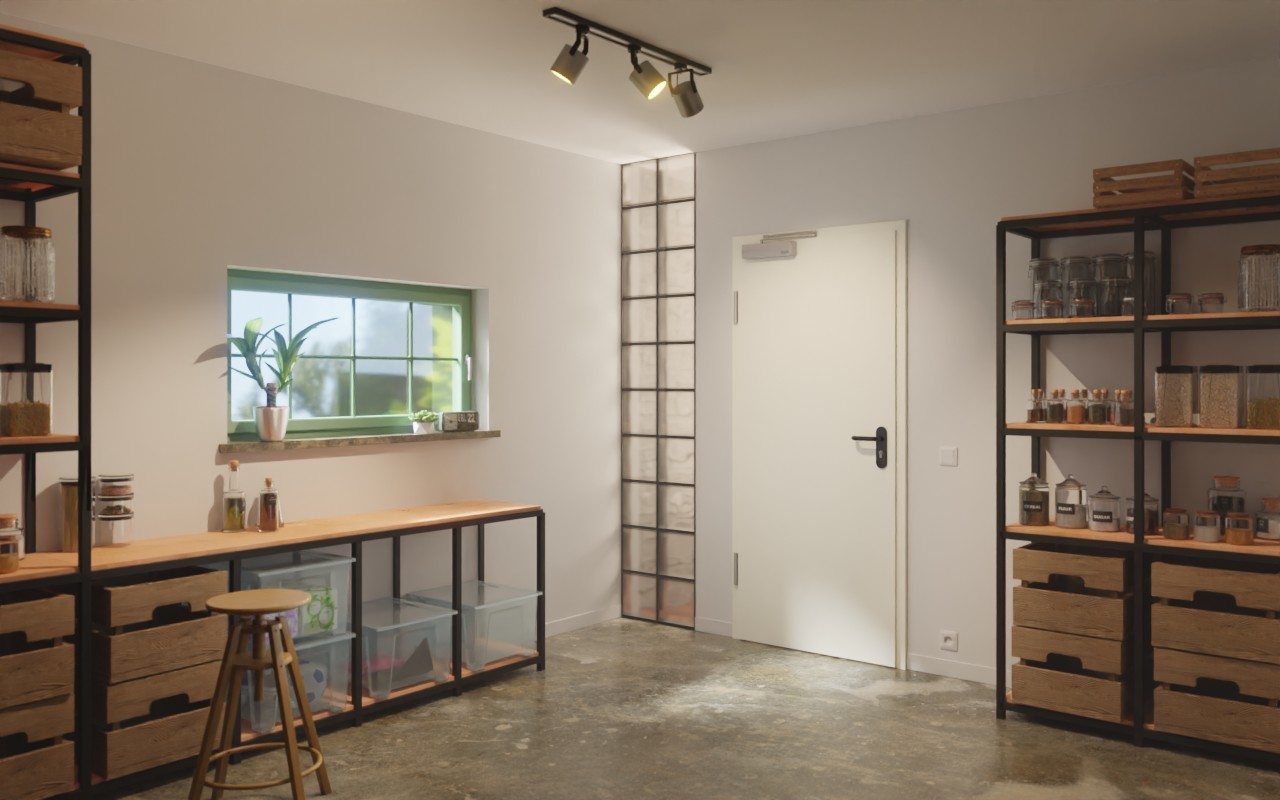 Na wszelki wypadek: Niezawodną ochronę w przypadku pożaru zapewniają drzwi przeciwpożarowe W980ST15 w kolorze platynowej bieli firmy Garant.