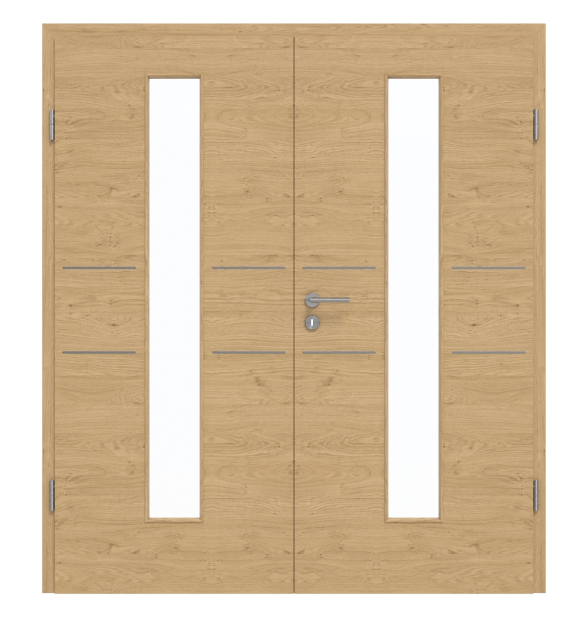 GARANT Drzwi dwuskrzydłowe Corona 732 Quer Authentic dąb szypułkowy CePaL z przeszkleniem LA-4 na środku z ościeżnicą