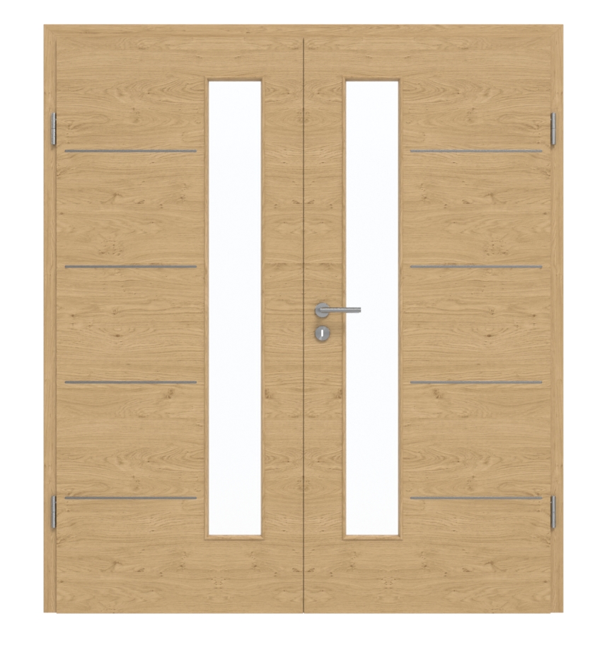 GARANT Drzwi dwuskrzydłowe Corona 734 Quer Authentic dąb szypułkowy CePaL z przeszkleniem LA-4 od strony zamka z ościeżnicą