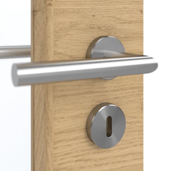 • Standardowe wykonanie kasety zamka: Zamek pokojowy BB: klasa 1, długość trzpienia 55 mm, listwa czołowa 20/235, kolor srebrny