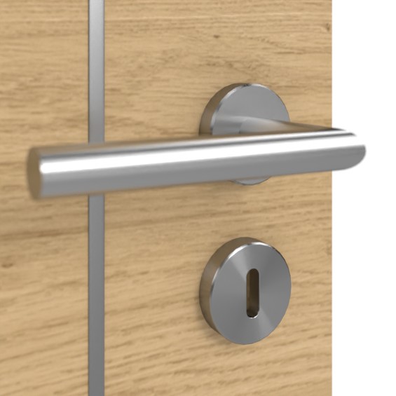 • Standardowe wykonanie kasety zamka: Zamek pokojowy BB: klasa 1, długość trzpienia 55 mm, listwa czołowa 20/235, kolor srebrny