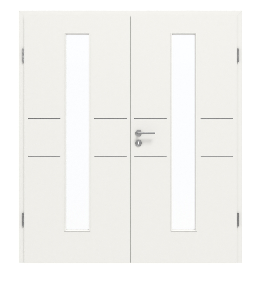 Ozdobione smukłym przeszkleniem i czterema krótkimi, delikatnymi lizenami, oba skrzydła drzwi prezentują się w nowoczesnym stylu. Jasny dekor w białym lakierze 9016 w sprytny sposób wnosi świeżość i przejrzystość do każdego pomieszczenia, nadając otoczeniu przyjazny charakter. Powierzchnia CPL jest odporna na zarysowania, uderzenia i ścieranie. Ponadto łatwo ją wyczyścić.