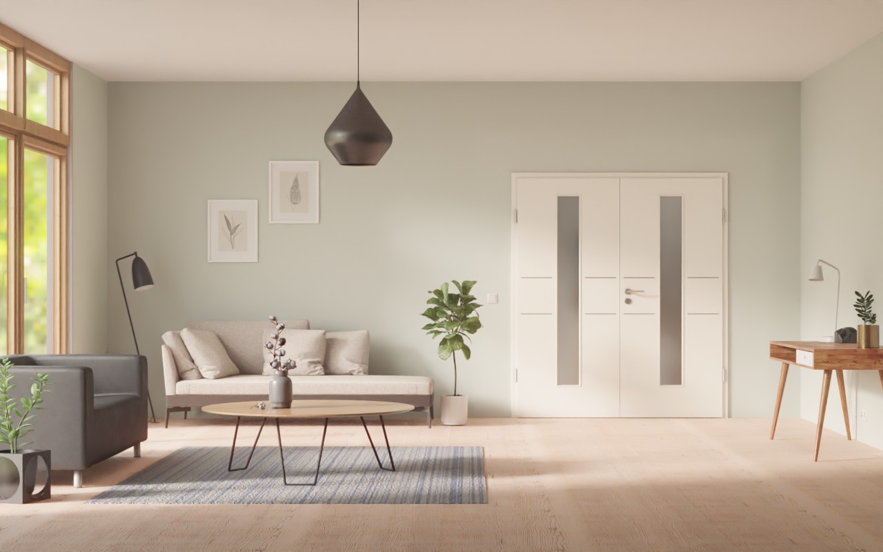 Nowoczesne podwójne drzwi wewnętrzne zachwycają odporną na uderzenia i zarysowania powłoką CPL oraz delikatnymi listwami:
