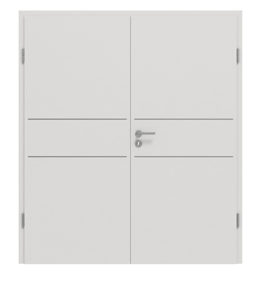 Drzwi wewnętrzne z podwójnymi skrzydłami najwyższej jakości wyróżniają się łatwą w czyszczeniu powłoką CPL oraz prostym designem listew: